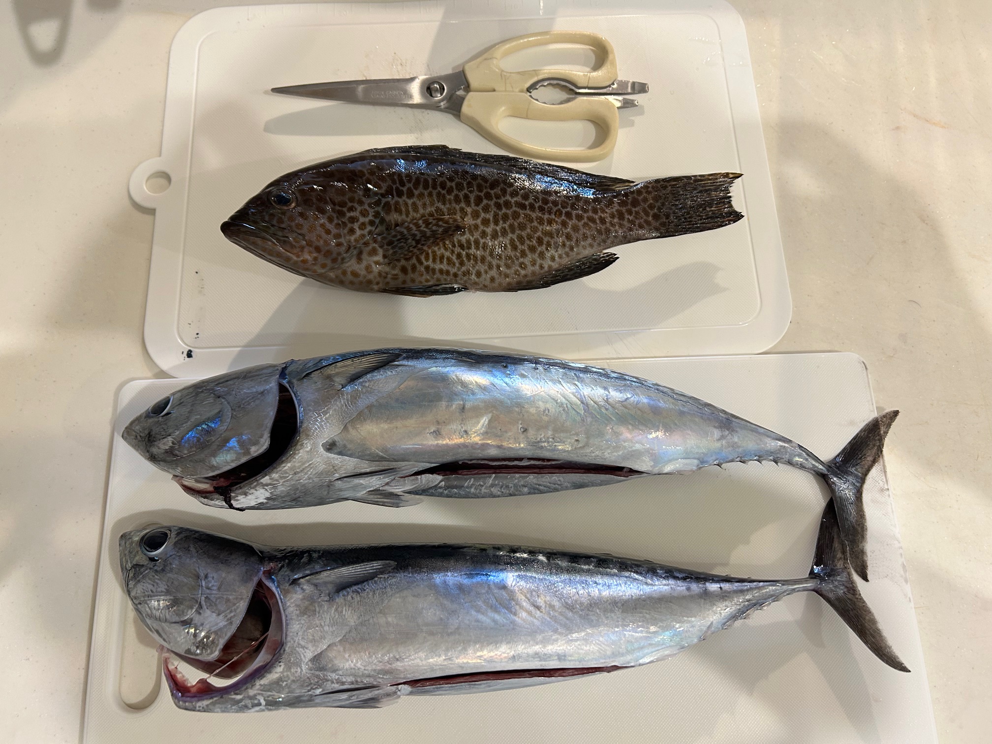 本日の釣果は、小アジ2匹(リリース)と、ソウダカツオ2匹。
